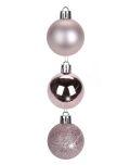 Sortierte Weihnachtsschüsseln in verschiedenen Arten von Rose: poliert, undurchsichtig und glitzer, ideal zum Dekorieren Ihres Weihnachtsbaums. Packung mit 12 Kunststoffkugeln.